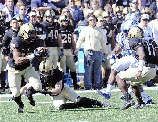The Black Knights used a 32-yard run by Joe Walker and a 37-yard reception by Kelvin White to drive to the Duke 2 late in the third, but another bad pitch by Bradshaw was deflected backward and Cash recovered for Duke.