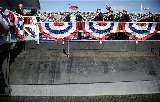 Several Connecticut and Rhode Island officials, Illinois Gov. Bruce Rauner and Navy Secretary Ray Mabus spoke at the ceremony at the Groton shipyard of Electric Boat, a division of General Dynamics Corp. that builds the submarines with Newport News Shipbuilding in Virginia.
