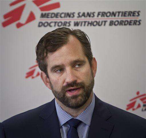 FILE - In this Wednesday, Oct. 7, 2015 file photo, Jason Cone, U.S. executive director of Doctors Without Borders, speaks during a press conference in New York calling for an independent, international investigation into the U.S. airstrike on a hospital in Afghanistan that killed at least 22 people. (AP Photo/Bebeto Matthews, File) The Associated Press