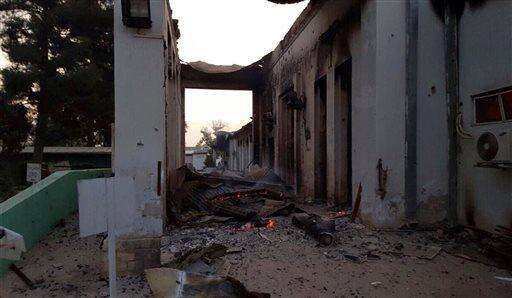 FILE - In this Saturday, Oct. 3, 2015 file photo, the charred remains of the Doctors Without Borders hospital is seen after being hit by a U.S. airstrike. The attack, which killed a number of hospital staff and patients, was intended to back up Afghan forces fighting to dislodge Taliban insurgents who overran the strategic city earlier in the week. (Médecins Sans Frontières via AP, File) The Associated Press