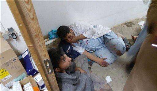 FILE - In this Saturday, Oct. 3, 2015 file photo, injured Doctors Without Borders staff are seen near their hospital after it was hit by a U.S. airstrike. The attack, which killed a number of hospital staff and patients, was intended to back up Afghan forces fighting to dislodge Taliban insurgents who overran the strategic city earlier in the week. (Médecins Sans Frontières via AP, File) The Associated Press