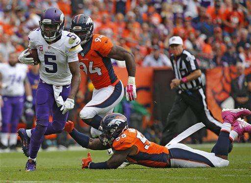 Despite constant pressure from Von Miller, DeMarcus Ware and the rest of that relentless pass rush, Bridgewater led the Vikings to 10 points after the two-minute warning in the second quarter, and completed 13 of 15 passes for 131 yards after halftime without an interception. He also ran three times for first downs in that game.