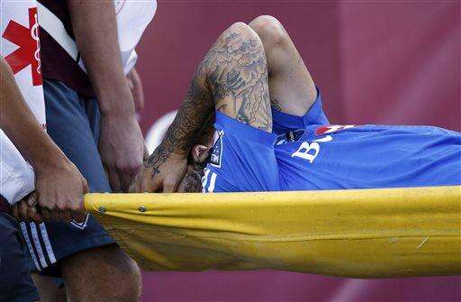 Montreal Impact defender Hassoun Camara is taken off the field on a stretcher after being injured in the first half of an MLS soccer match against the Colorado Rapids in Commerce City, Colo., Saturday, Oct. 10, 2015. (AP Photo/David Zalubowski) The Associated Press