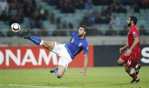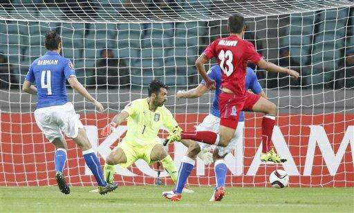 Eleven minutes in, Pirlo's replacement Marco Verratti launched a long, vertical pass for Eder that gave the Brazilian-born forward plenty of room to glide past the defense and easily beat goalkeeper Kamran Agayev.