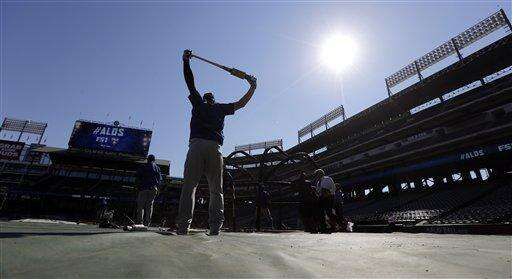 Left-hander Martin Perez (3-6) pitches for the Rangers in the potential clincher. Marco Estrada (13-8), who held hitters to a MLB-low .183 batting average after the All-Star break, starts for Toronto.