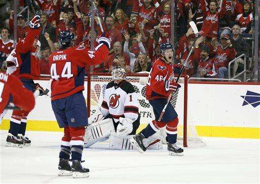 New Jersey responded within 22 seconds of Orpik's goal when a wide-open Henrique took Dmitry Orlov's diagonal pass and fired past Braden Holtby to cut the deficit in half. Fewer than three minutes later, Gelinas' slap shot tied on the Devils' second power play.