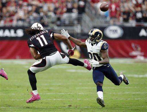 RECEIVING STANDOUTS: The 32-year-old Fitzgerald has already caught 30 passes this season for 432 yards, and John Brown has 19 receptions for 228 yards. Before their 24-22 loss to the Rams, the Cardinals had scored 95 points in their previous two games.
