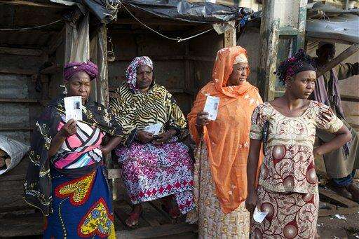 Women wait to cast their votes during presidential elections in the Bambeto neighbourhood of Conakry, Guinea, Sunday Oct. 11, 2015. Hundreds lined up in Guinea and began voting in the country’s second democratic presidential election in more than half a century. (AP Photo/Youssouf Bah) The Associated Press