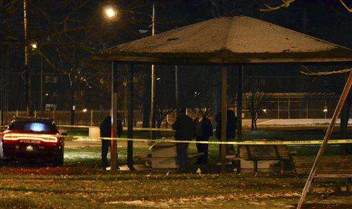FILE - This Saturday, Nov. 22, 2014, file photo, shows Cleveland police investigating a scene after an officer fired two shots, killing 12-year-old Tamir E. Rice, who police said pulled a gun from his waistband. The gun was later determined to be a BB gun with the orange safety cap removed. The Cleveland police union and the local prosecutor remain at odds even after the prosecutor released expert reports calling the fatal shooting of Rice by a police officer justified. (Cory Schaffer/Northeast Ohio Media Group via AP) The Associated Press
