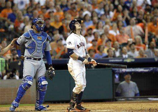 Colby Rasmus, who homered in Houston's first three playoff games, got a kooky single in the eighth when his pop fly caromed off the ceiling and back into play.