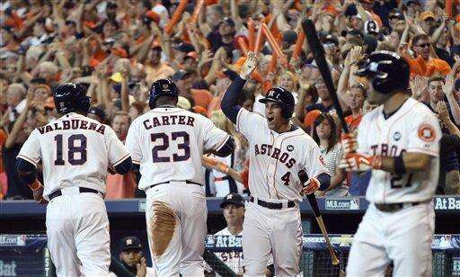 Carter, batting .199 in the regular season but .455 in the postseason, was a triple shy of the cycle for the Astros, who were hosting a playoff game for the first time since the 2005 World Series.