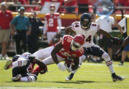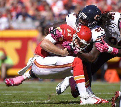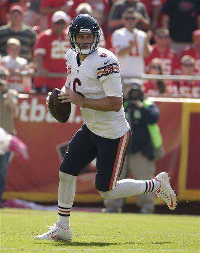 Notes: Smith was 16 of 30 for 181 yards without an interception, but was sacked three times. He's been sacked 22 times already this season. ... Bears coach John Fox improved to 8-1 against Kansas City. Most of those wins came with Denver. ... Cutler needs three TD passes to surpass Sid Luckman (137) for most in franchise history.