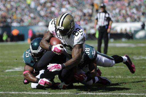 NOTES: Brees finished 26 of 43 for 335 yards, two TDs and one interception. ... Murray had 83 yards rushing on 20 carries. Mathews had 73 yards on eight carries. ... The Eagles were missing starting LBs Kiko Alonso (knee) and Mychal Kendricks (hamstring). ... Saints didn't have four-time All-Pro G Jahri Evans (knee). WR Marques Colston left with an arm injury. ... Bradford has nine career 300-yard games.