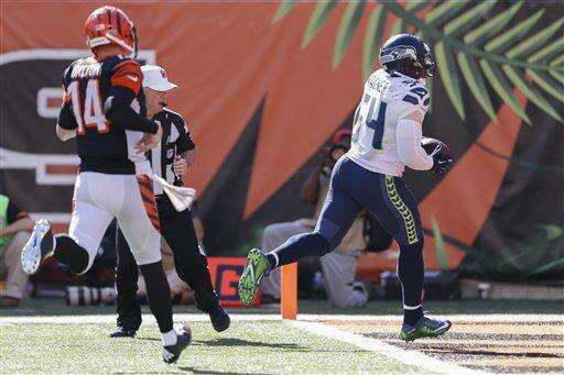 Russell Wilson was 15 of 23 for 213 yards with a touchdown, a tipped interception and four sacks. His 30-yard pass to Jermaine Kearse was the first touchdown the Bengals had allowed before halftime this season.