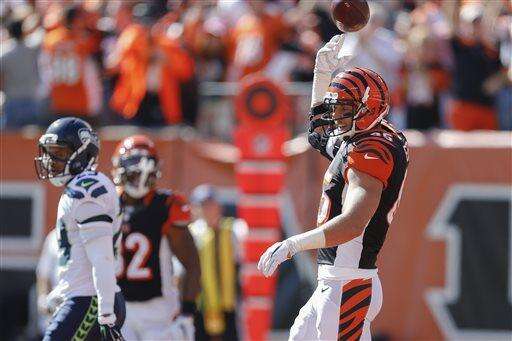 Notes: The Bengals are one win shy of matching the best start in club history. They went 6-0 in 1975 and 1988. ... Wagner had a strained chest muscle, but finished the game. ... Wilson was sacked four more times, bringing the season total to 22. ... Earl Thomas got the Seahawks' first interception of the season. ... Cincinnati had a potential 72-yard TD pass to A.J. Green nullified by a holding penalty in the first quarter. Green had five catches for 65 yards in the first half, only one more for 13 yards the rest of the way.