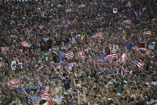 Fans during the CONCACAF Cup soccer match between Mexico and United States at the Rose Bowl Stadium, in Pasadena , Calif. Saturday, Oct. 10, 2015, (AP Photo/Jae C. Hong)