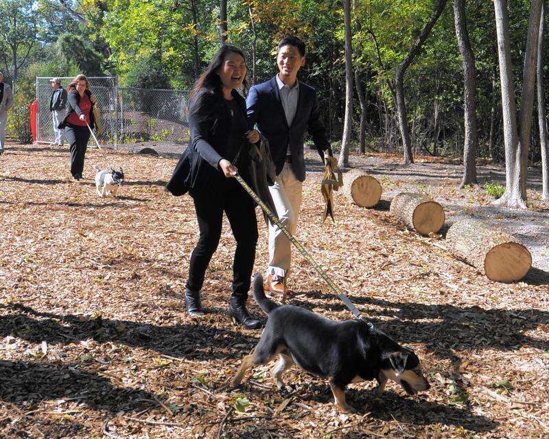 The space is dedicated to the memory of former shelter President Thelma S. Zwirner, acknowledging her 25-years of dedicated work to help Orphans of the Storm's stray and abandoned charges. The festivities included an outdoor ribbon-cutting ceremony, followed by a dog parade as guests and the shelter's dogs got to take their first walk through their new path.