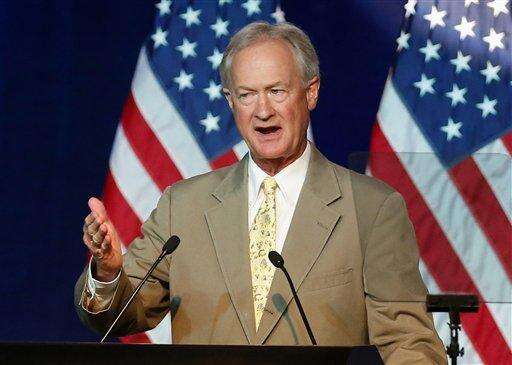 FILE - In this Aug. 28, 2015 file photo, Democratic presidential candidate, former Rhode Island Gov. Lincoln Chafee speaks in Minneapolis. The Republican presidential contest has been aflutter for months, with all that preening and cackling from an overcrowded colony of rivals. Now it’s time for the Democrats to spread their wings before a big national audience, with their first debate, Tuesday night. (AP Photo/Jim Mone, File) The Associated Press