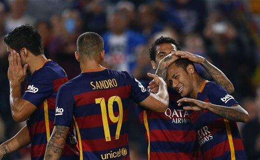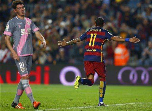 MADRID (AP) - Neymar scored four goals and set up another in Barcelona's 5-2 win over Rayo Vallecano in the Spanish league on Saturday, while Cristiano Ronaldo led Real Madrid with a goal and an assist in a 3-0 victory over Levante.