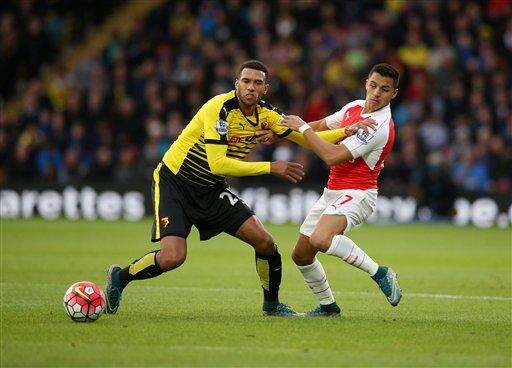 LONDON (AP) - Second-half goals from Alexis Sanchez, Olivier Giroud and Aaron Ramsey guided Arsenal to a 3-0 win at Watford on Saturday that kept the team in second place in the Premier League.