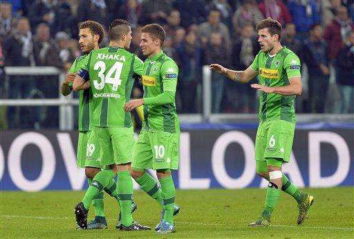 Juventus has seven points, one more than Manchester City, which rallied to beat Sevilla 2-1. Sevilla is next with three points, while 'Gladbach earned its first point.