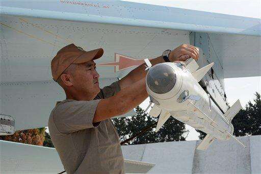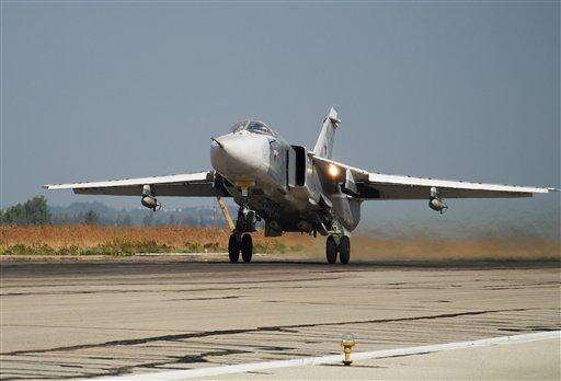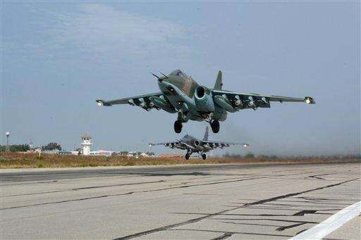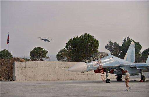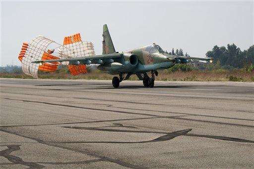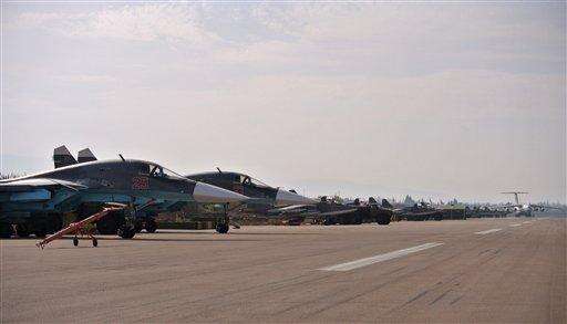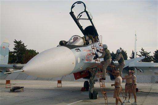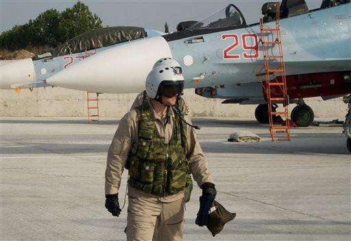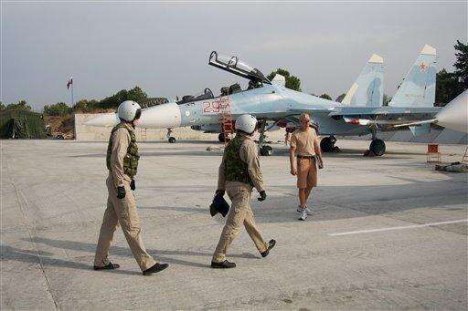 HEMEIMEEM AIR BASE, Syria (AP) - As Russia unleashed fighter jets Thursday from this air base in western Syria to pound militant targets, President Vladimir Putin pushed diplomatic efforts with the West, stressing the need "to consider each other as allies in a common fight."