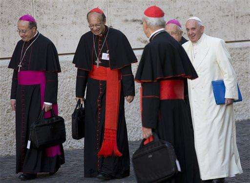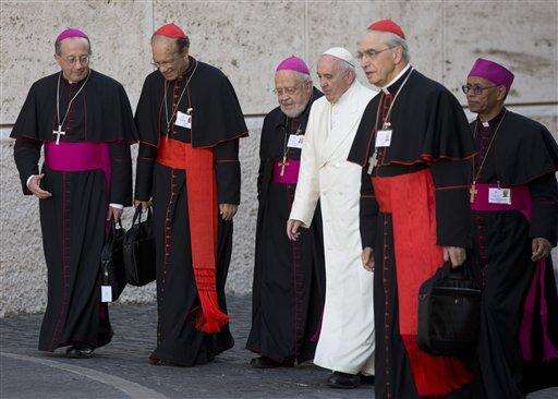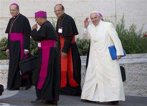 VATICAN CITY (AP) - Catholic bishops called Saturday for a more welcoming church for cohabitating couples and Catholics who have divorced and civilly remarried, endorsing Pope Francis' call for a more merciful and less judgmental church.