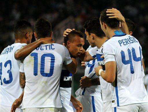Inter Milan's Ivan Perisic, right, celebrates with teammates after scoring during a Serie A soccer match against Palermo, in Palermo, Italy, Saturday, Oct. 24, 2015. (AP Photo/Alessandro Fucarini) The Associated Press