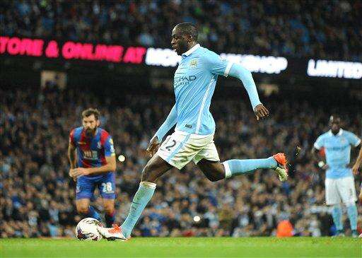 Manchester City’s Yaya Toure scores a penalty against Crystal Palace during the English League Cup Fourth Round soccer match between Manchester City and Crystal Palace at the Etihad Stadium, Manchester, England, Wednesday, Oct. 28, 2015. (AP Photo/Rui Vieira) The Associated Press