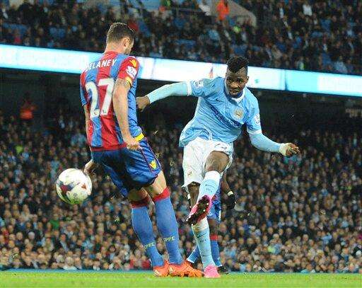 Manchester City’s Kelechi Iheanacho, right, scores against Crystal Palace during the English League Cup Fourth Round soccer match between Manchester City and Crystal Palace at the Etihad Stadium, Manchester, England, Wednesday, Oct. 28, 2015. (AP Photo/Rui Vieira) The Associated Press