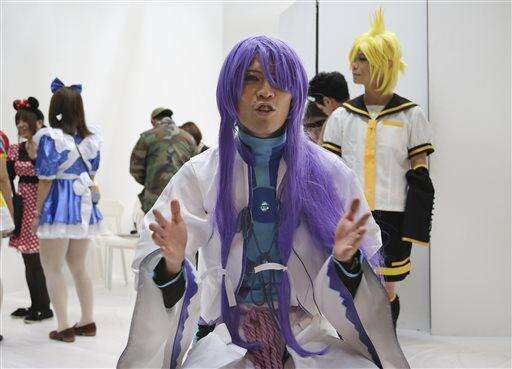 "What's fun is that this is all so unreal," said party organizer Takahisa Takeishi, a young man who managed to look far more effeminate than his usual self with a purple wig dressed up as Gakupo or Gackpo, a virtual singer or vocaloid. "We can't look like this every day."