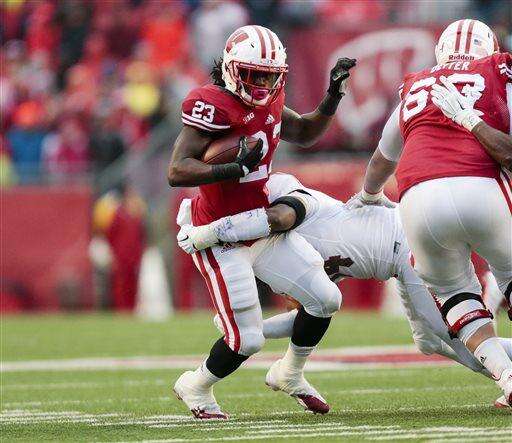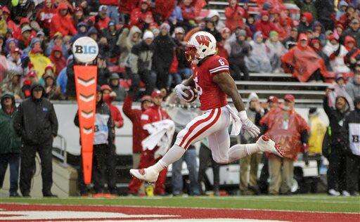 Wisconsin running back Corey Clement (6) runs in for a touchdown against Rutgers during the first half of an NCAA college football game Saturday, Oct. 31, 2015, in Madison, Wis. (AP Photo/Andy Manis)