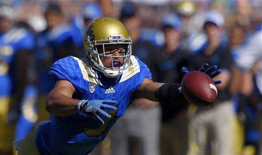 Paul Perkins had an 82-yard touchdown run among his 118 yards and two scores for UCLA, and Ishmael Adams returned an interception 96 yards for a second-quarter touchdown. Nate Starks rushed for a score for UCLA, which still could win the Pac-12 South by winning its final four regular-season games.