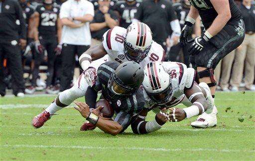 After stopping the Aggies at midfield to force a punt with 1:28 left Saturday, South Carolina quarterback Perry Orth was sacked on consecutive plays before an incompletion and then a game-clinching interception as Texas A&M held on for a 35-28 victory.
