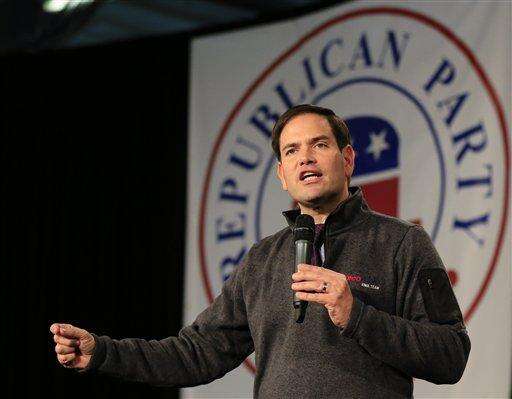 Republican presidential candidate, Sen. Marco Rubio, R-Fla., speaks at the Iowa GOP's Growth and Opportunity Party at the Iowa state fair grounds in Des Moines, Iowa, Saturday, Oct. 31, 2015. (AP Photo/Nati Harnik) The Associated Press