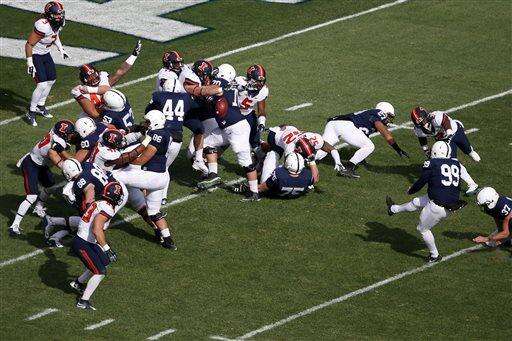 After two of his extra points were blocked and he sailed a kickoff out of bounds, Penn State kicker Joey Julius was replaced by Tyler Davis who made 42- and 28-yard field goals. Mark Allen added a 20-yard touchdown run to cap the scoring.