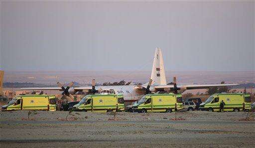 Egyptian emergency workers wait near ambulances to receive bodies of victims from the crash of a Russian aircraft carrying 217 passengers and 7 crew members over the Sinai peninsula at Kabrit airport, some 20 miles north of Suez, Egypt, Saturday, Oct. 31, 2015. A Russian Metrojet plane crashed Saturday morning in a mountainous region in the Sinai after taking off from Sharm el-Sheikh, killing all 224 people aboard. Officials said the pilot had reported a technical problem and was looking to make an emergency landing before radio contact with air traffic controllers went dead. (AP Photo/Amr Nabil)