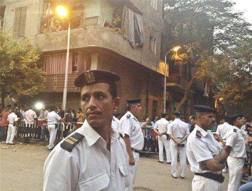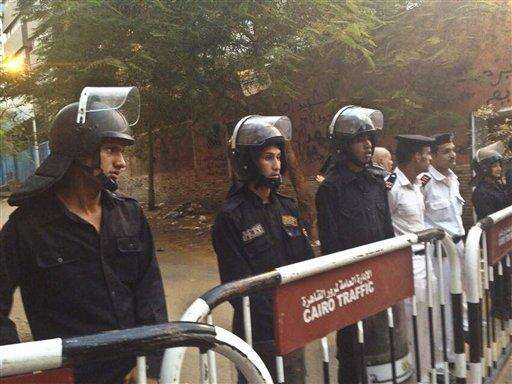 Police stand guard outside a morgue in Cairo, Egypt, ahead of the arrival of bodies of Russian plane crash victims Saturday, Oct. 31, 2015. A Russian aircraft carrying 224 people, including 17 children, crashed Saturday in a remote mountainous region in the Sinai Peninsula about 20 minutes after taking off from a Red Sea resort popular with Russian tourists, the Egyptian government said.(AP Photo/Nariman El-Mofty)