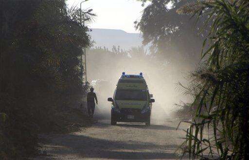 An Egyptian ambulance arrives near Kabrit military airport where bodies from the crash of a Russian aircraft carrying 217 passengers and 7 crew members over the Sinai peninsula are being sent, some 20 miles north of Suez, Egypt, Saturday, Oct. 31, 2015. A Russian Metrojet plane crashed Saturday morning in a mountainous region in the Sinai after taking off from Sharm el-Sheikh, killing all 224 people aboard. Officials said the pilot had reported a technical problem and was looking to make an emergency landing before radio contact with air traffic controllers went dead. (AP Photo/Amr Nabil)
