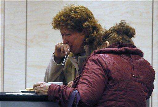 Relatives and the friends of passengers aboard the Metrojet flight that crashed in Egypt react while gathering to grieve at a hotel near St. Petersburg's Pulkovo airport outside St.Petersburg, Russia, Saturday, Oct. 31, 2015. Russia's civil air agency is expected to have a news conference shortly to talk about the Russian Metrojet passenger plane that Egyptian authorities say has crashed in Egypt's Sinai peninsula. (AP Photo/Dmitry Lovetsky)