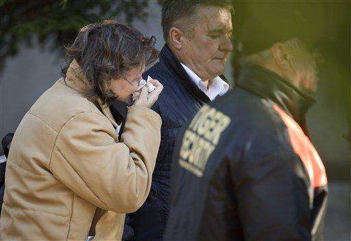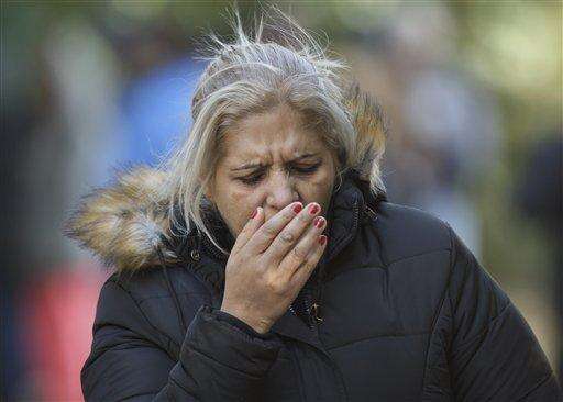 A woman cries as relatives and friends wait for victims identification outside the main forensic institute in Bucharest, Romania, Saturday, Oct. 31, 2015, following a nightclub fire in the early morning hours. Hundreds of young people had gone clubbing at the hip Colectiv nightclub Friday night to enjoy a free concert by the Goodbye to Gravity metal band but the evening ended in horror, as the inferno caused a panic that killed tens of people and injured many others. (AP Photo/Vadim Ghirda)