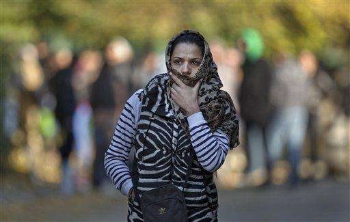 A woman walks as relatives and friends wait for victims identification outside the main forensic institute in Bucharest, Romania, Saturday, Oct. 31, 2015, following a nightclub fire in the early morning hours. Hundreds of young people had gone clubbing at the hip Colectiv nightclub Friday night to enjoy a free concert by the Goodbye to Gravity metal band but the evening ended in horror, as the inferno caused a panic that killed tens of people and injured many others.(AP Photo/Vadim Ghirda)