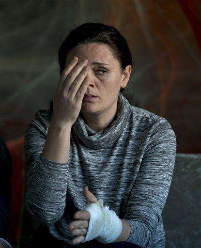 "I was two meters (6.6-feet) from the door and I barely got out," she told The Associated Press. Then there was a blast and her hair caught fire.