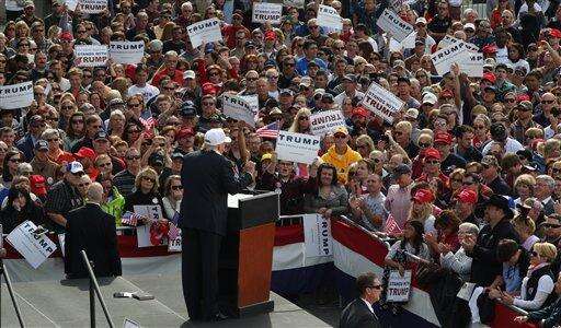 Republican presidential candidate Donald Trump speaks to supporters during a rally, Saturday, Oct. 31, 2015 in Norfolk, Va. (AP Photo/Jason Hirschfeld) The Associated Press
