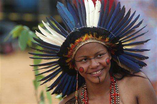 A Terena indigenous woman from Brazil looks on before the start of the canoe event at the World Indigenous Games in Palmas, Brazil, Saturday, Oct. 31, 2015. The first edition of the World Indigenous Games, which brought delegates representing first nations from across the globe to a remote outpost in the heart of Brazil, was wrapping up on Saturday after nine days of traditional sports, dancing, trading and inter-cultural exchange. (AP Photo/Eraldo Peres)