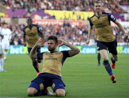 Arsenal beat Swansea 3-0, with goals coming from Olivier Giroud, Laurent Koscielny and Joel Campbell in the second half.