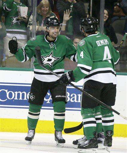 Patrick Sharp scored the first goal for the Stars, who didn't trail in the game. Fiddler had a goal and two assists, and Jason Demers added a short-handed goal and an assist.