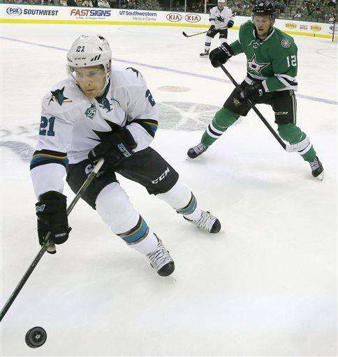 NOTES: The videoboard above the ice proclaimed "Sharp Week," in honor of Sharp's four goals in three games over a five-day stretch. ... Ward has been even better, with six goals in his last six games. ... The Sharks had won five of their previous six against Dallas.