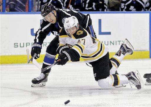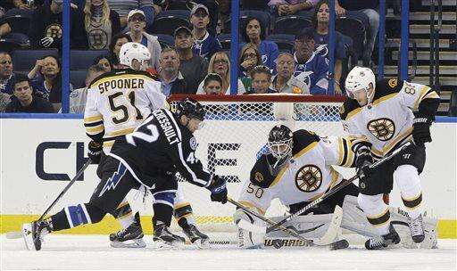 NOTES: Bruins center David Krejci's nine-game point streak ended. It was the longest point streak to open a season by a Boston player since Joe Juneau and Dmitri Kvartalnov had 14-game streaks to start the 1992-93 season. ... The Lightning played without injured forwards Cedric Paquette (ankle) and Jonathan Drouin (lower body). ... Lightning backup goalie Andrei Vasilevskiy, sidelined since early September following vascular surgery, is expected to rejoin the team when it begins a road trip Sunday at Carolina.