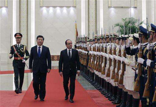 BEIJING (AP) - The Chinese and French presidents announced Monday they have agreed that a global climate change pact should require countries to increase their emissions cuts every five years, in an important signal four weeks before world leaders meet in Paris.